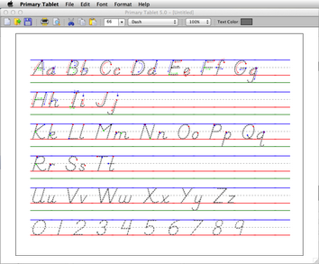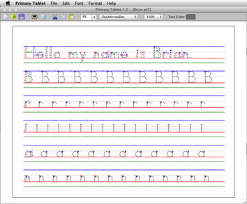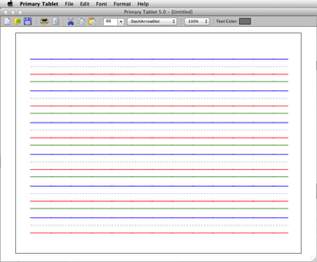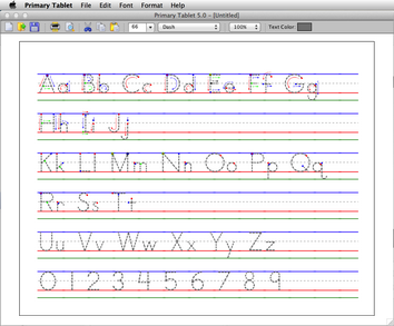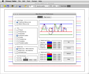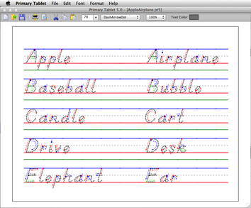 Primary Tablet prints whatever you type in your choice of primary tablet formats, with or without ruled lines, solid or dotted lettering, and with or without directional arrows or color-coded starting dots and arrows.
